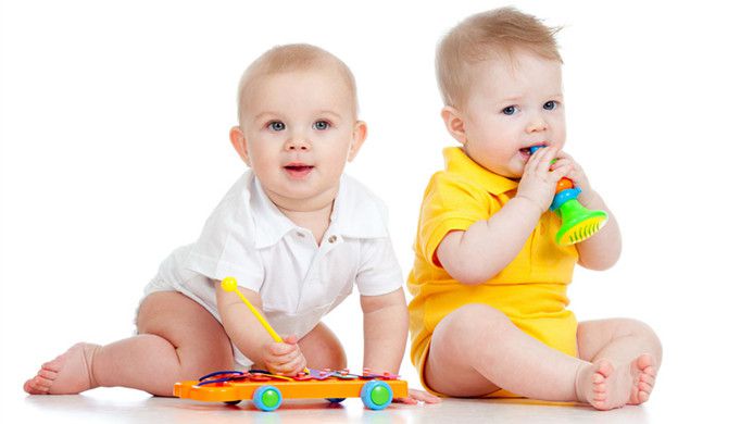 1个月左右的宝宝,可以将粗线条的物体放在婴儿床上方,让他跟着看,慢慢刺激视觉发育,逐渐用不同的颜色和图案吸引他;3个月以后,宝宝开始喜欢聆听音乐和妈妈的声音,在给他换尿布、洗澡时,可以对他唱歌或说话,这些语言是他最初的交流工具,睡觉时,也可以放些柔和的摇篮曲帮他放松。